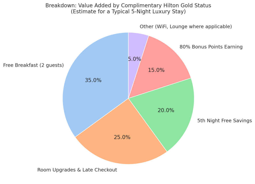 Gold Status Auto-Enroll Your Amex Platinum already gives complimentary Hilton Honors Gold (no need to apply separately). This alone adds ₹15,000–₹40,000 of value on a 5-night luxury stay.