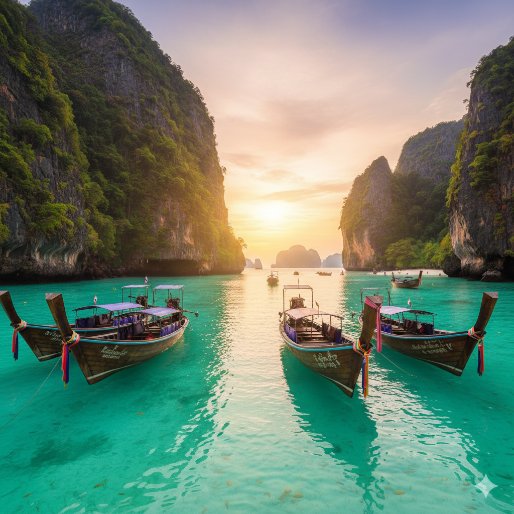 - Day 2: Island Hopping to Phi Phi: Embark on a full-day speedboat tour to the famous Phi Phi Islands. Visit Maya Bay (from the boat), snorkel in crystal-clear lagoons, and enjoy the stunning limestone cliffs.